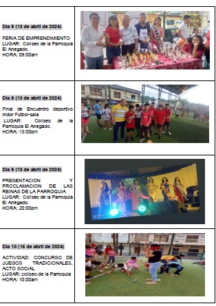 4. Proyecto de motivación a través de actividades recreativas dirigidas a niños, niñas adolescentes, adultos mayores y personas con discapacidad de la parroquial rural El Anegado